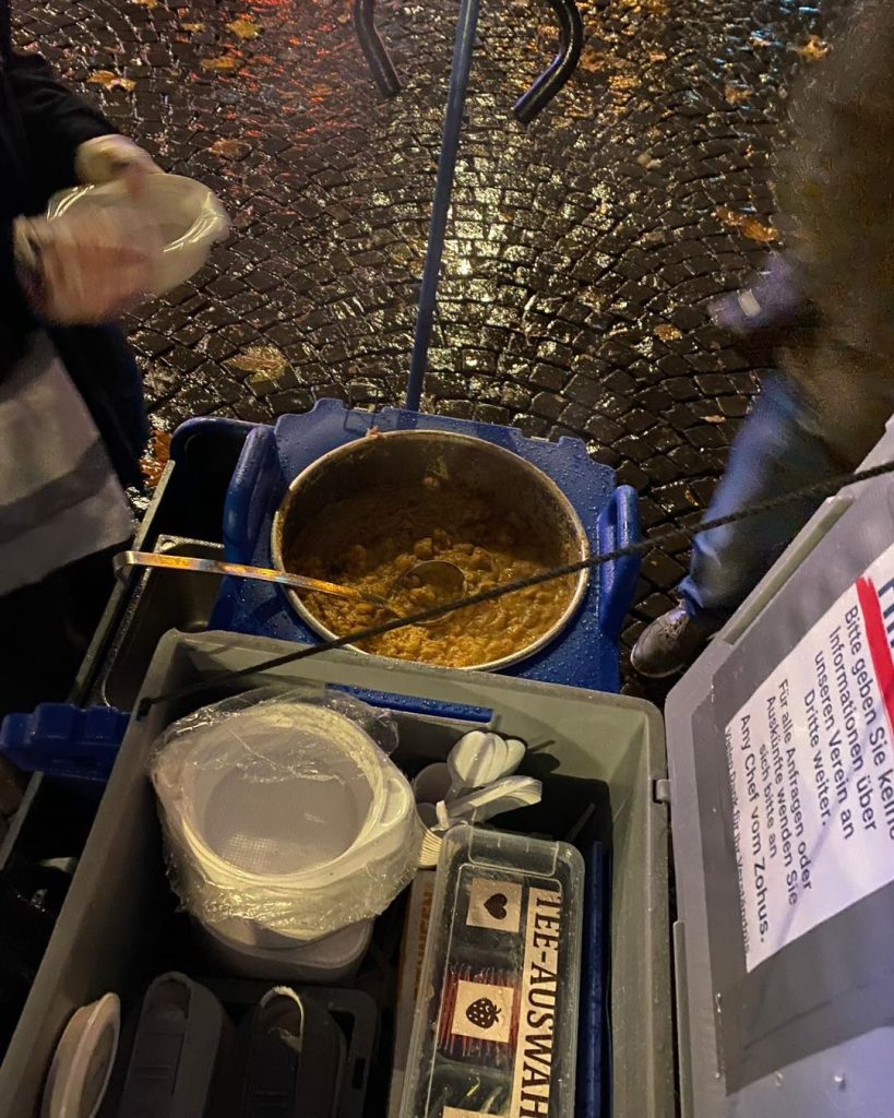 Am letzten Freitag haben Teiles des Teams um Geben Gibt e.V. und 4100 Duisburg erneut dabei geholfen, warme Mahlzeiten am Schäferturm in der Duisburger Innenstadt auszugeben. In den frühen Abendstunden, bei bereits winterlicher Kälte, kamen zahlreichen Menschen zusammen, die auf eine warme Suppe, ein freundliches Gespräch und ein wenig Menschlichkeit angewiesen sind. Zudem war die mobile Kleiderkammer geöffnet.em ersten kalten Freitagabend