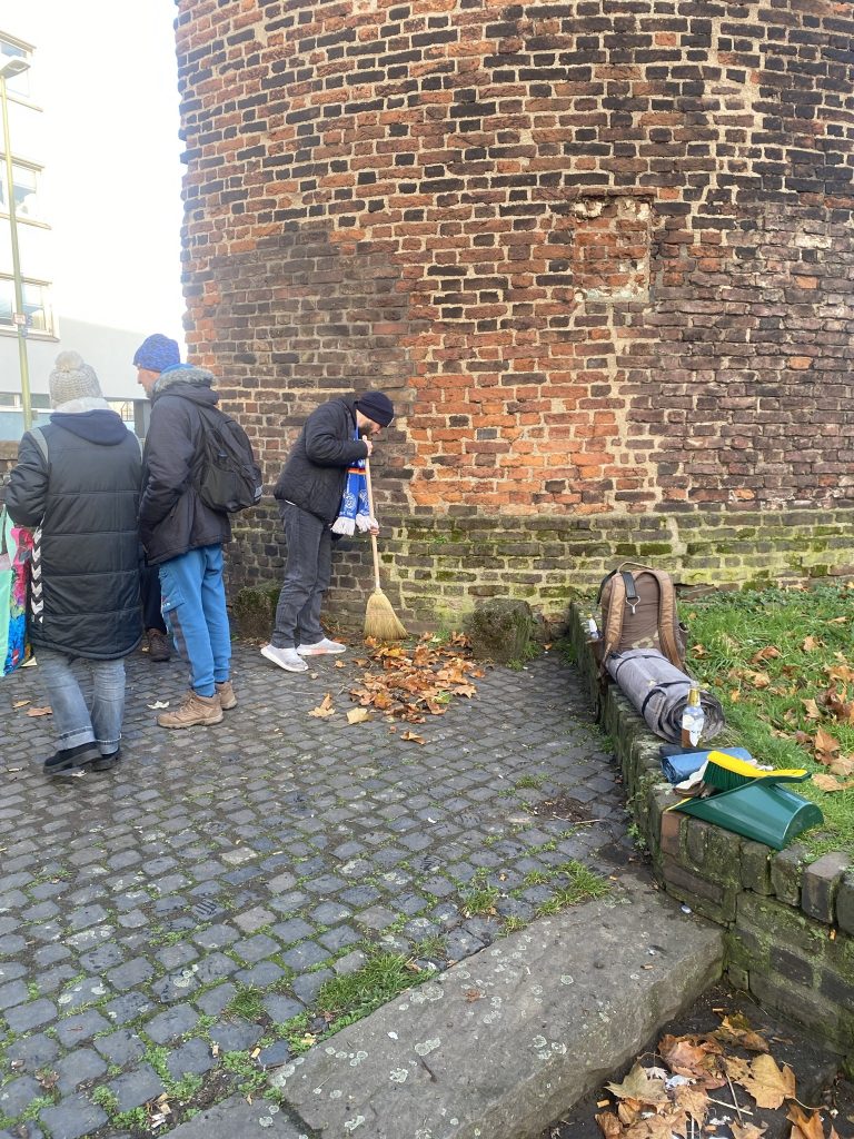 Seit Mitte November 2025 sorgt Geben Gibt e.V. mit den Jungs, die 4100 Duisburg auf der Strasse tragen, für ein Stück Ordnung in Duisburg. Einer der Gäste hält ganz einfach den Platz rund um den Schäferturm sauber. Mit Besen und Kehrblech kann man ne Menge bewegen. Am Ende einer Ausgabe wird das „Werkzeug“ im K54, dem tollen Café am Kuhlenwall, abgegeben und derjenige bekommt einen 1A Kaffee und eine Schachtel Zigaretten. Ganz easy. Quasi nach dem Amsterdamer Vorbild. Aber das können wir hier in Duisburg auch. Also #liebedeinestadt !!!